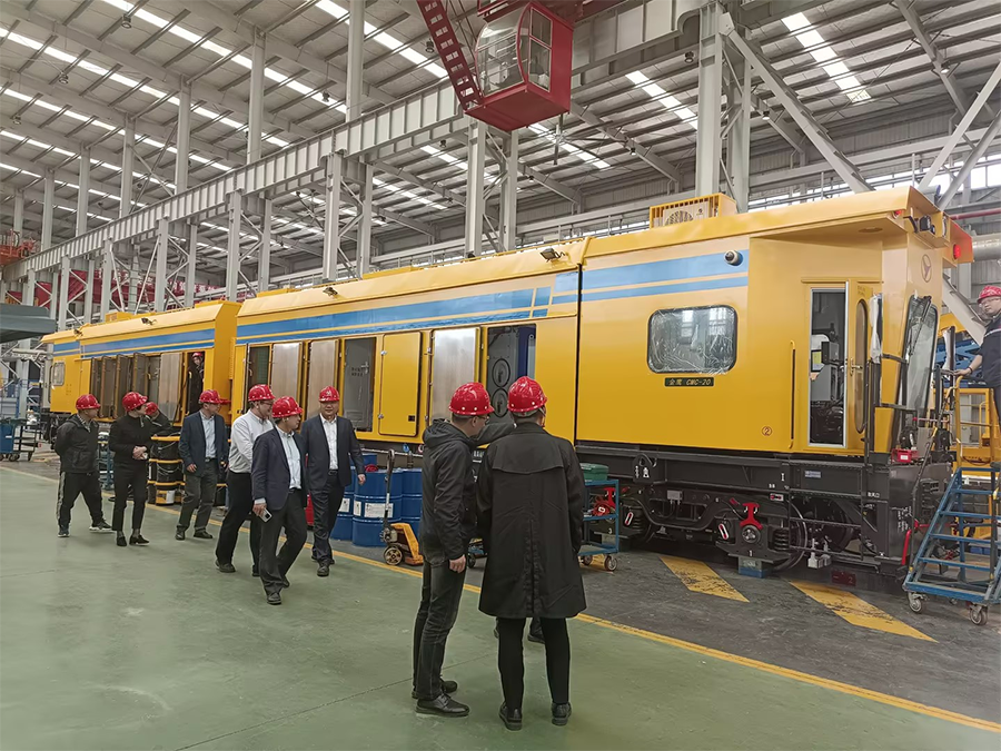 会后,JIUYOU.COM九游(中国受邀参观了金鹰重工生产车间,实地了解了金鹰重工研发出的多种功率轨道车,以及打磨车、综合巡检车、接触网架线车等产品的生产制造流程。