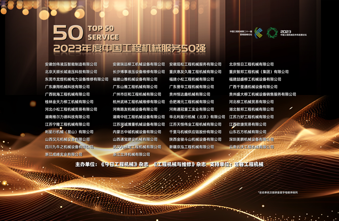 2023年10月18日,“2023年度中国工程机械年度服务50强”榜单在“亚运之城”杭州重磅发布。坚守工程机械服务价值,《今日工程机械》杂志、《工程机械与维修》杂志联袂推出“中国工程机械服务50强”评选。2023年度中国工程机械服务50强评选对象涵盖在中国工程机械市场上服务企业(包括代理商、技术服务商等),评选的核心标准为服务能力、服务质量和服务社会效益。JIUYOU.COM九游(中国机械集团喜获殊荣,再次入围中国工程机械年度服务50强。